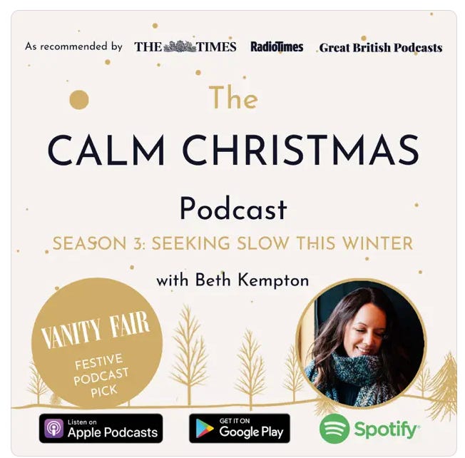 I’m a podcast junkie. One I discovered this year is The Calm Christmas. Listening to Beth’s soothing voice and English accent already feels like you are invited into an English Christmas Story. She shares ideas on how to create a meaningful Christmas, recipes, and crafty ideas. It is one of those things where when I listen, I feel like I’m looking into a different world unlike my one here in Southern California. It gives me those nostalgic Christmas vibes.