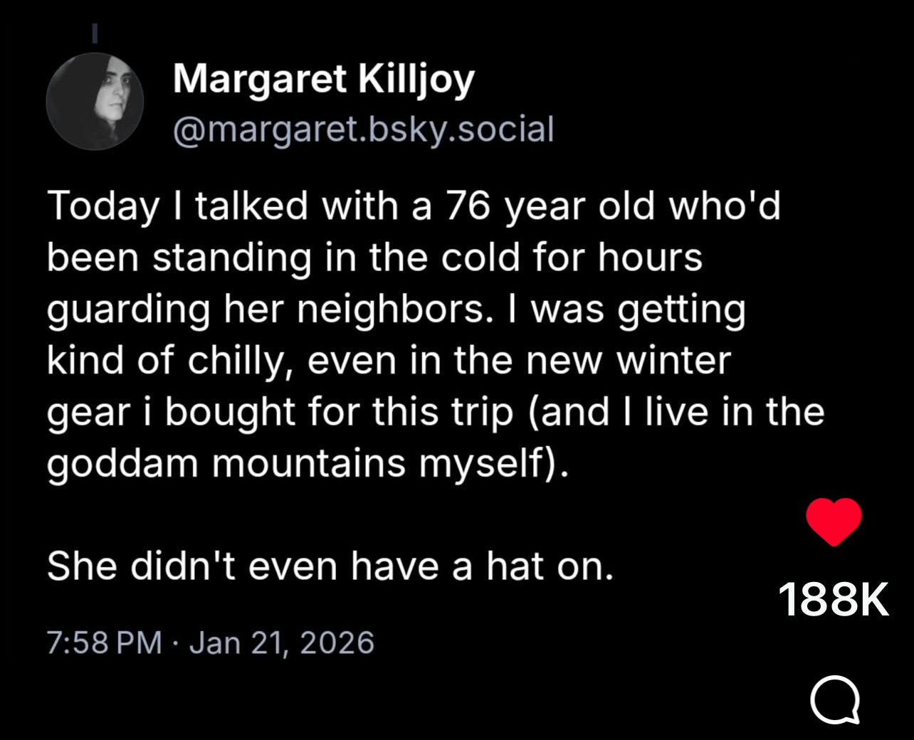 I stumbled upon some posts from a reporter sent to Minnesota (@margaret.bsky.social)