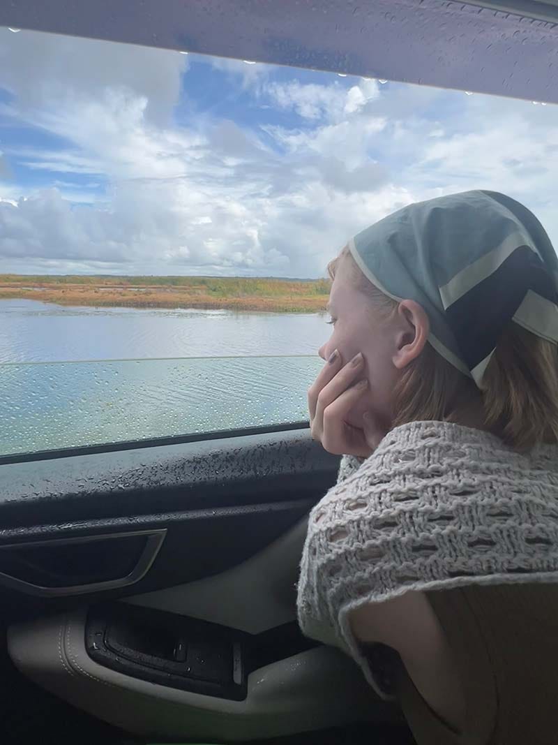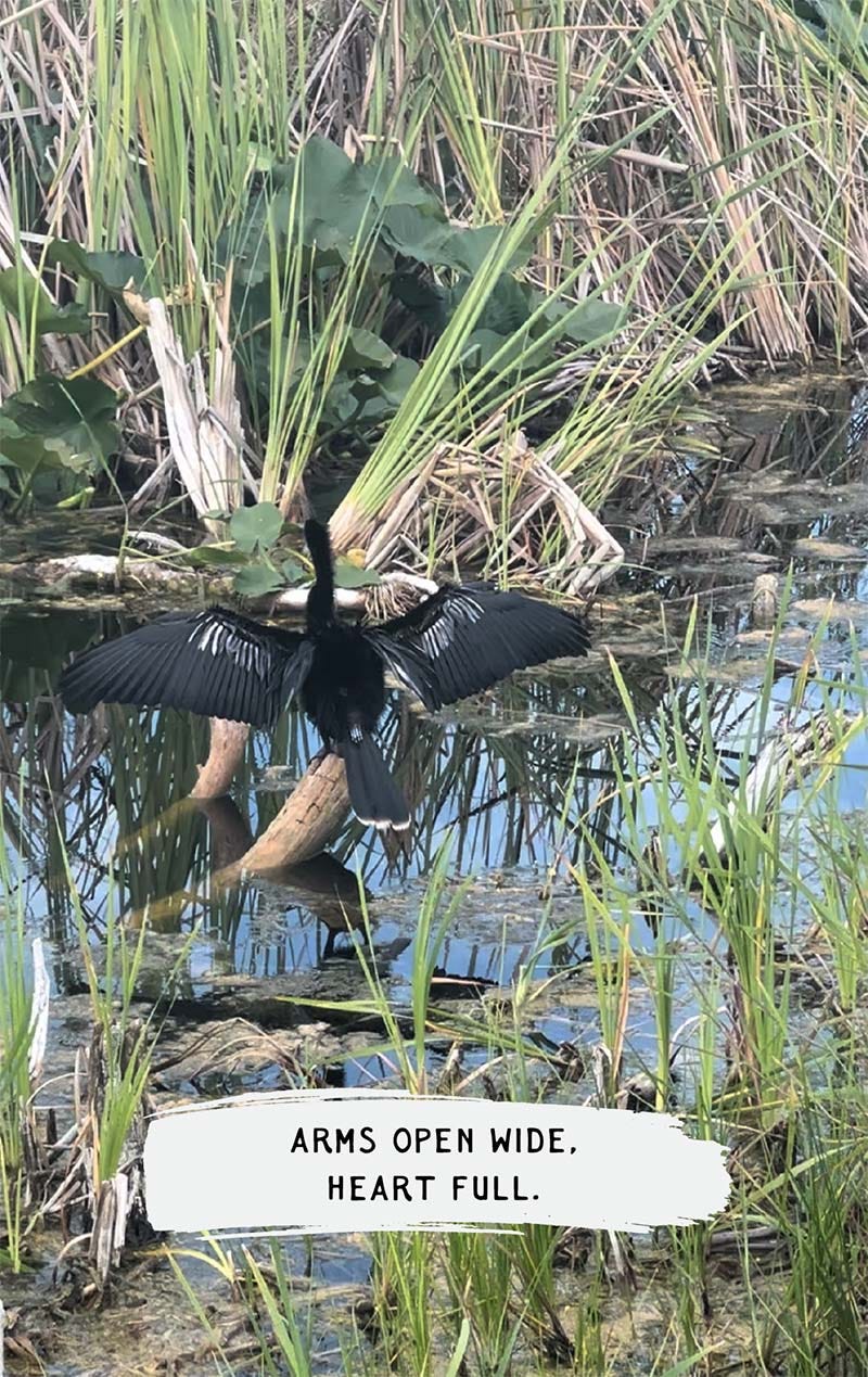I felt hope when I saw him sitting there. Just last summer, we had to cancel our travel plans due to my daughter’s health. Her heart was acting up. And now, here we were. She can once again move in the world like the rest of us. We were on one of four trips we planned this summer. Making up for lost time. Sitting in the back of the car watching alligators sunbathing and feeling the rain on our skin. Those beautiful wings, their arms wide open. That is how I always want to exist. Arms wide open, heart full.